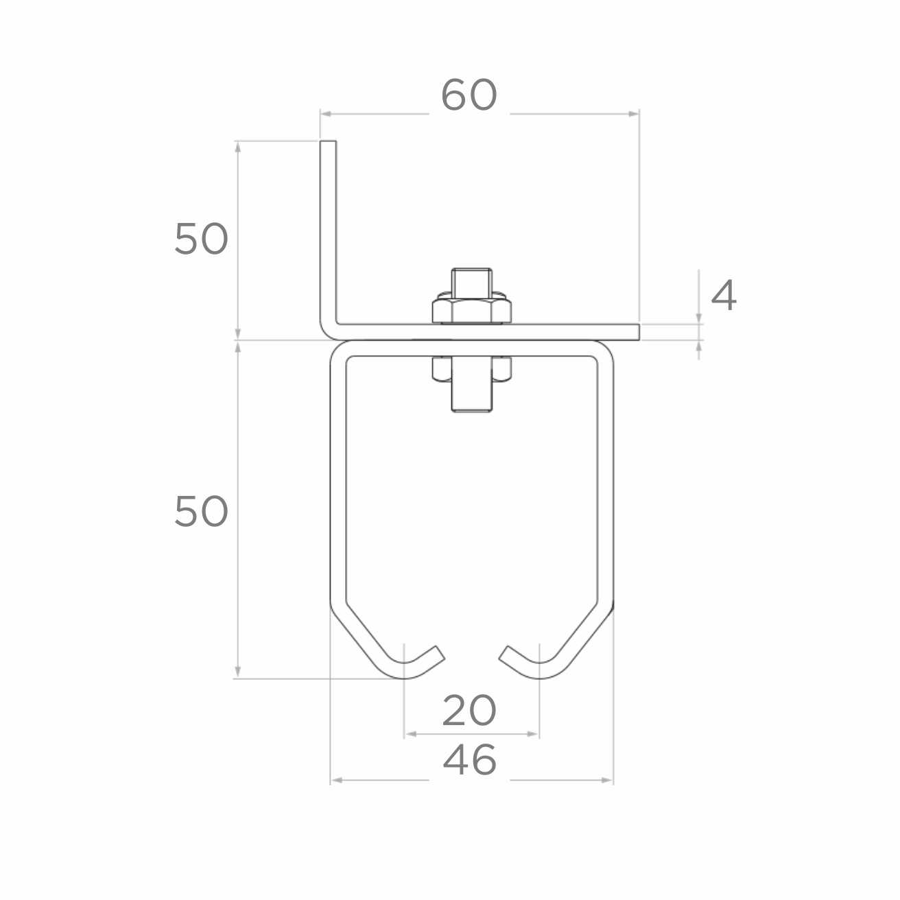 - Hoogte verticale arm (H): 50 mm