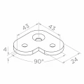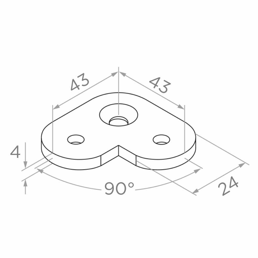 Hoekbevestigingsplaat voor platte leuningsystemen, bestemd voor het bevestigen van leuningen van bovenaf aan platte oppervlakken met behulp van schroeven. Dankzij de compacte vorm in hoekijzervorm 90° en drie bevestigingsgaten zorgt het voor een stabiele en esthetische hoekverbinding van balustrade-elementen.