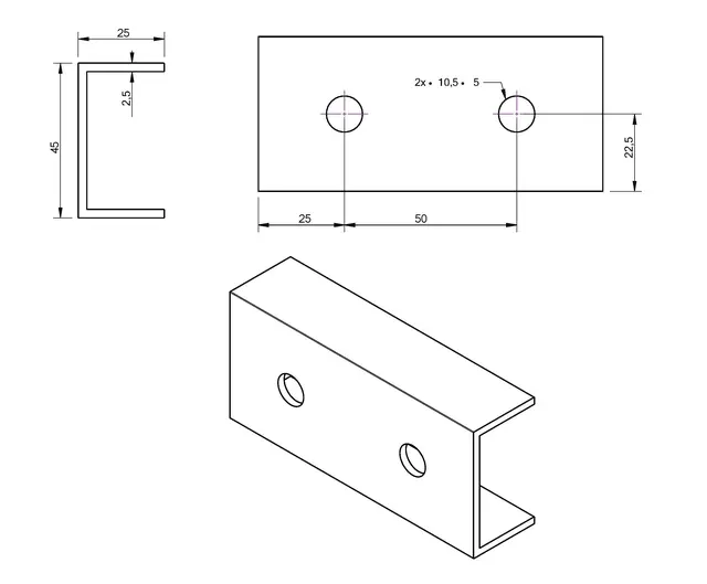 - Doorsnede [mm]: 25x45x25