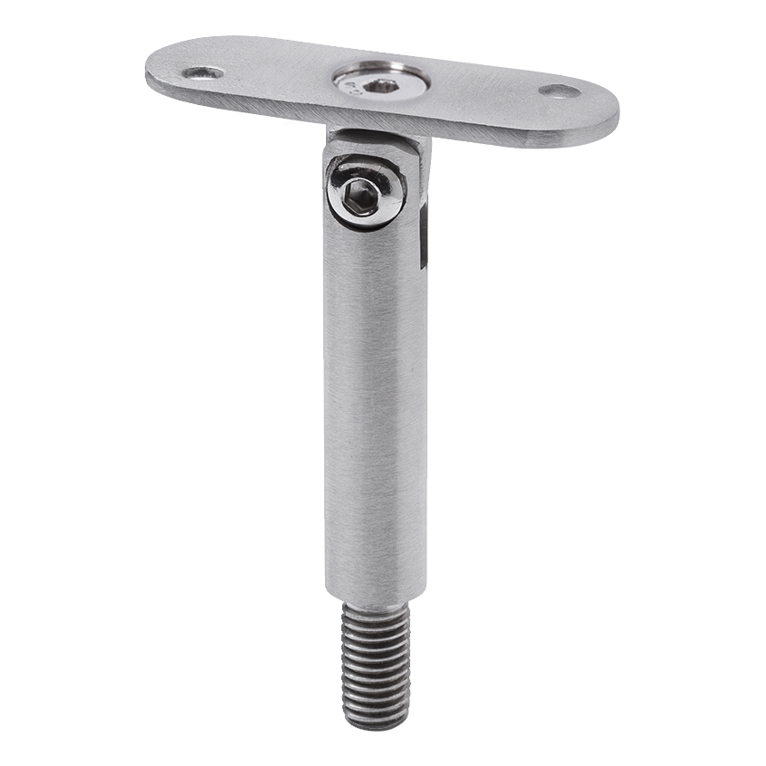 De scharnierstang is bestemd voor montage in RVS balustrade systemen — vooral in trapbalustrades, waar een verandering van de leuninghoek vereist is. Het scharnier maakt een vloeiende instelling van de montageplaat ten opzichte van de as van de stang mogelijk, waardoor de leuning parallel aan de traplijn loopt zonder de noodzaak van extra hoekelementen. Het is geschikt overal waar de installateur een flexibele paal-leuning verbinding nodig heeft: trappenhuizen, entresols, bordessen en galerijen.