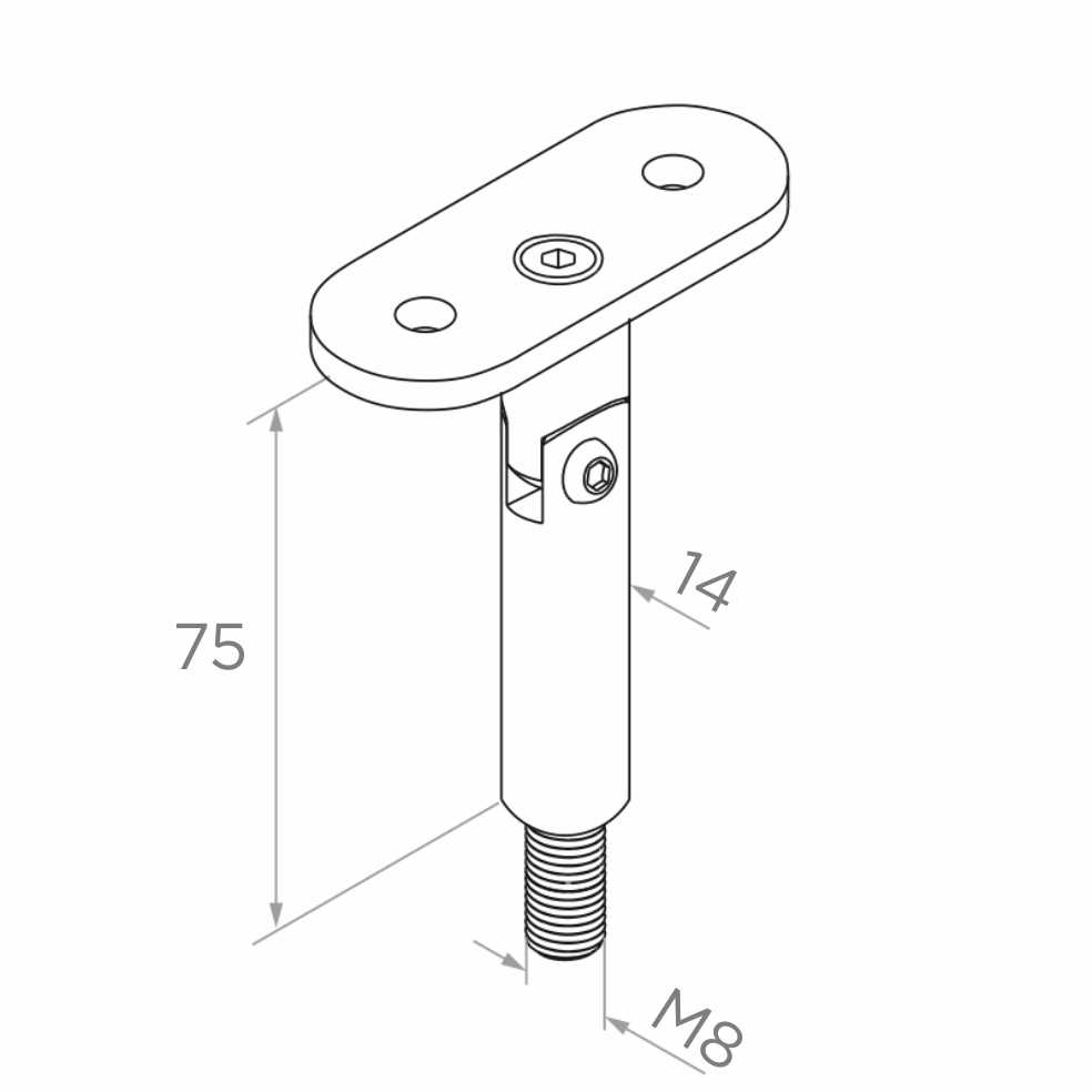 Scharnierstang leuninghoudsteun ø 14×75 mm met platte plaat – AISI 304 satijn, draad M8