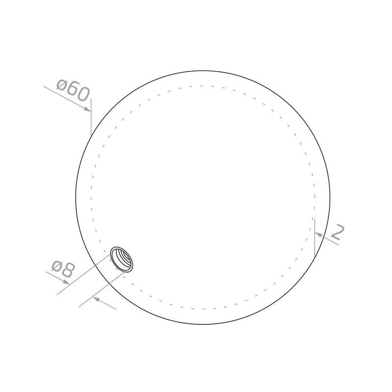 Schroefbare holle bol ø60 mm met schroefdraad M8 – roestvrijstaal AISI 304 satijn