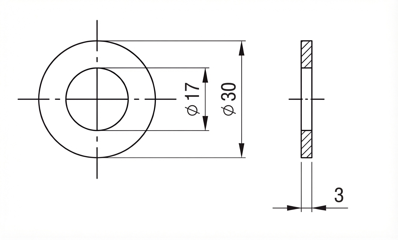 - Norm: DIN 125 (equivalent van ISO 7089/7090)