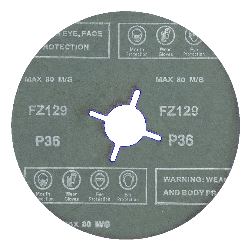 Bij het werken met fiberschijven moet volledige persoonlijke beschermingsuitrusting worden gebruikt: oog- en gezichtsbescherming, beschermende handschoenen, gehoorbescherming en ademhalingsbescherming. Voordat u begint met slijpen, controleer of het toerental van de slijper de toegestane omtreksnelheid van de schijf niet overschrijdt.