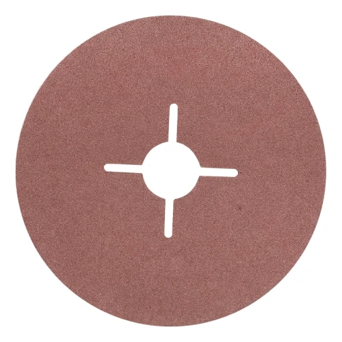 De schijf wordt gemonteerd op het steunbordje van een haakse slijper via het centrale gat van 22 mm met kruisvormige inkeping, wat snelle vervanging op de werkplek vergemakkelijkt. De vezelondergrond geeft de schijf hoge stijfheid en scheurweerstand bij hoge toerentallen, terwijl de nodige flexibiliteit behouden blijft voor werk op licht gebogen oppervlakken.