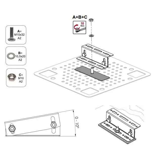 "Z"-beugel plat dak CWL 17x7x5cm - Roestvrij staal H17 1.4016 voor fotovoltaïsche systemen.